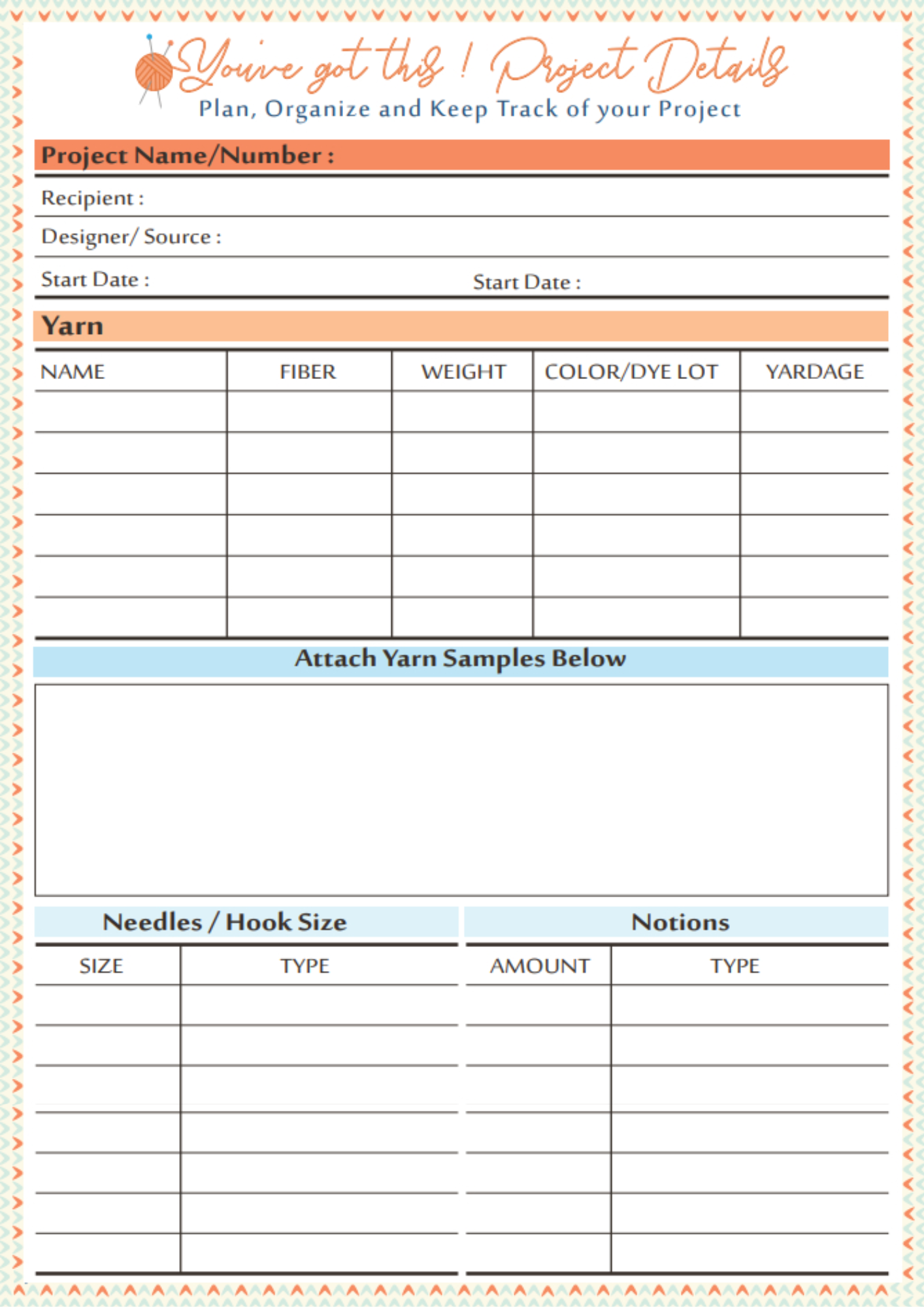 ✅Project planning pages to record stitch details, yarn type, hook/needle size, and notes.